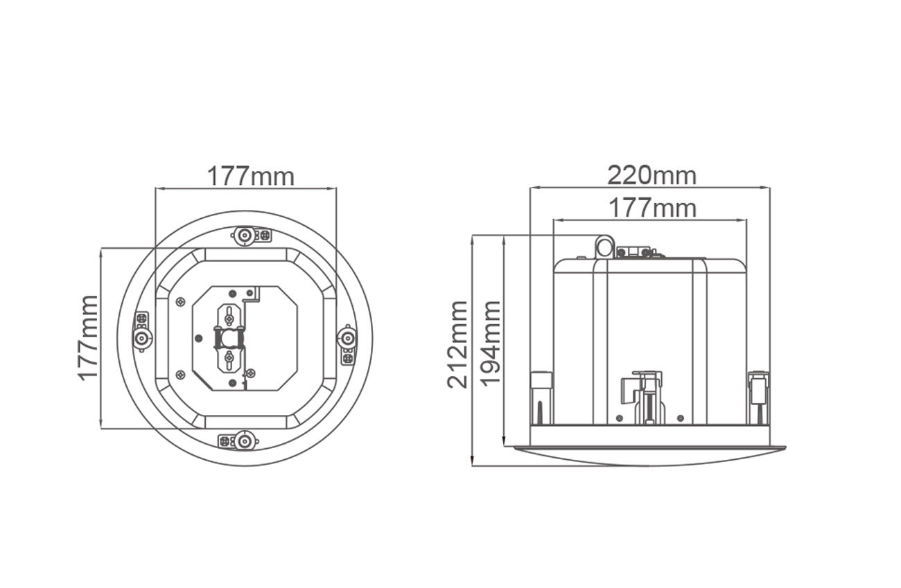 MQ系列是同轴结构二分频天花音箱,MQ-8C采用8"低音、MQ-6C采用6.5"低音,配合丝膜高音,声音更加柔和细腻;并且同轴声源为同一点发声,声像还原更准确,声音更自然真实;MQ系列配套的安装接插件具有快速安装的特点。
