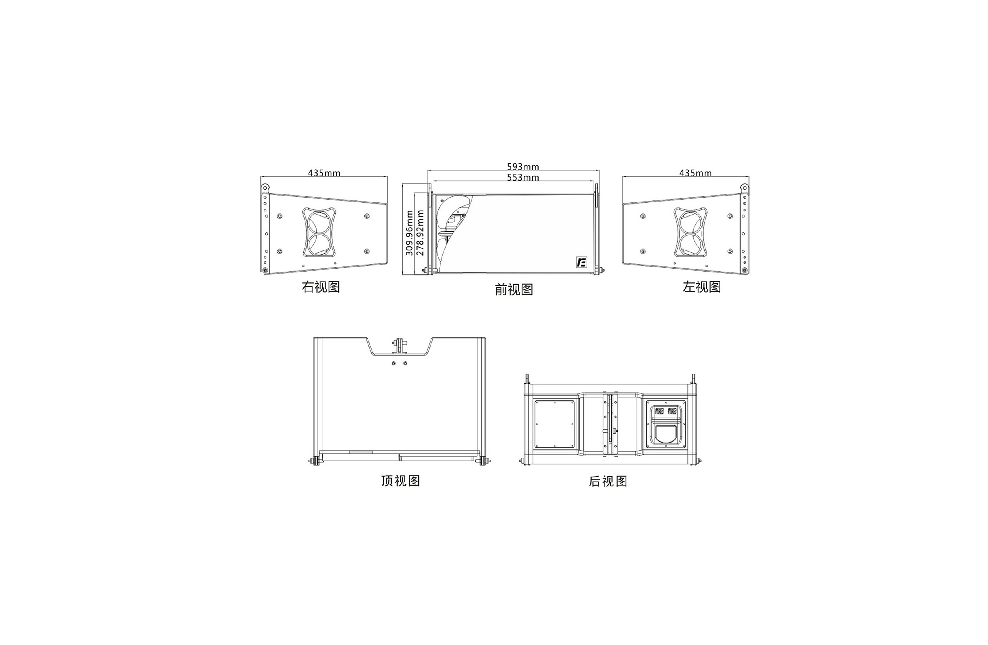 驱动单元被动式散热系统,抽手三合一设计,增加倒相管效率,使箱体调谐拥有更好的高阻尼系数,同时能有效降低喇叭单元温度。内藏式吊挂件三点吊挂,可吊挂多达16只音箱,同时具备7:1的安全系数。每只音箱可调角度为0°~10°。多种吊挂安装方式扩展了音箱的用途。