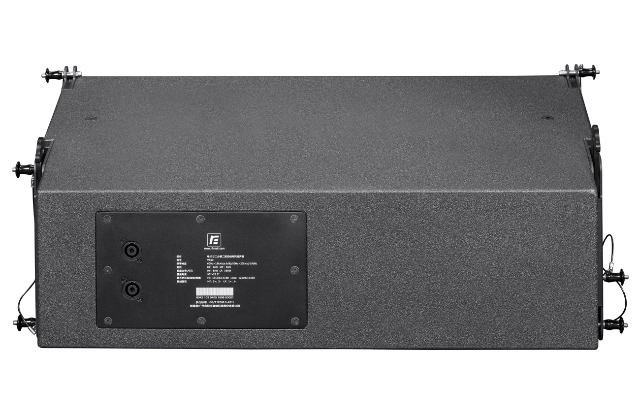 ►VR12的设计秉承了VR系列灵活多变的设计风格,具备水平阵列、垂直阵列或堆叠组合多种模式,采用1×3寸西班牙beyma高音单元,水平22.5°×垂直90°波阵面覆盖角,配置的12寸中低频单元结合新型声波导向相位塞,拓展了中频的工作带宽。16只VR12水平组合覆盖角刚好是360度,可实现精准全方位声学覆盖。采用全新四点安装吊架件,每组可吊挂多达16只音箱,具备7:1的安全系数,表面采用聚脲喷涂工艺,更结实耐磨。