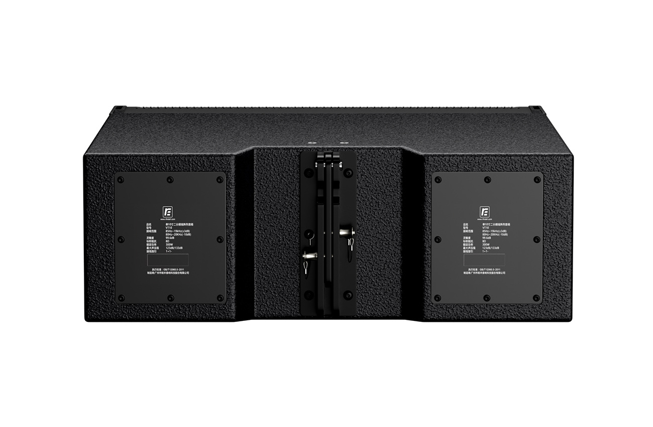 ►VT10是一款设计紧凑、轻盈的线性阵列扬声器,采用全新高品质10寸低音单元,优越动态能量让大功率工作时失真降到最小;采用3寸高音压缩单元和配置水平100º、垂直10º指向的高精度线性声学波阵面高音号角,实现精准及均匀的声学覆盖,保证听音覆盖区域内获得一致性最佳的声学效果;