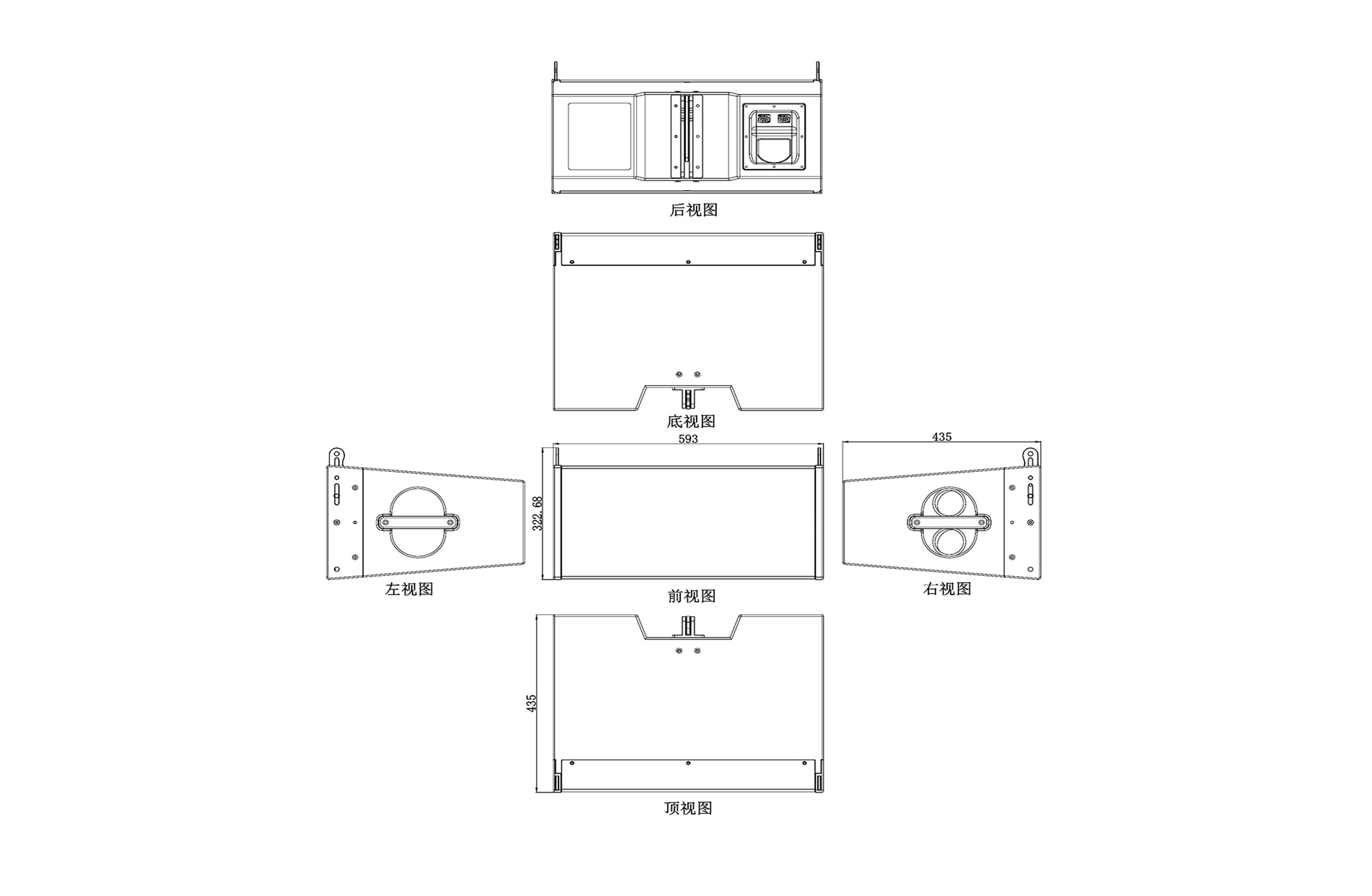 ►箱体表面采用结实耐磨聚脲喷涂工艺,并且配置了两个力学优化式抽手,采用简易安装三点平衡吊挂连接件,可搭配VT18S低频音箱组合吊挂或堆叠使用。