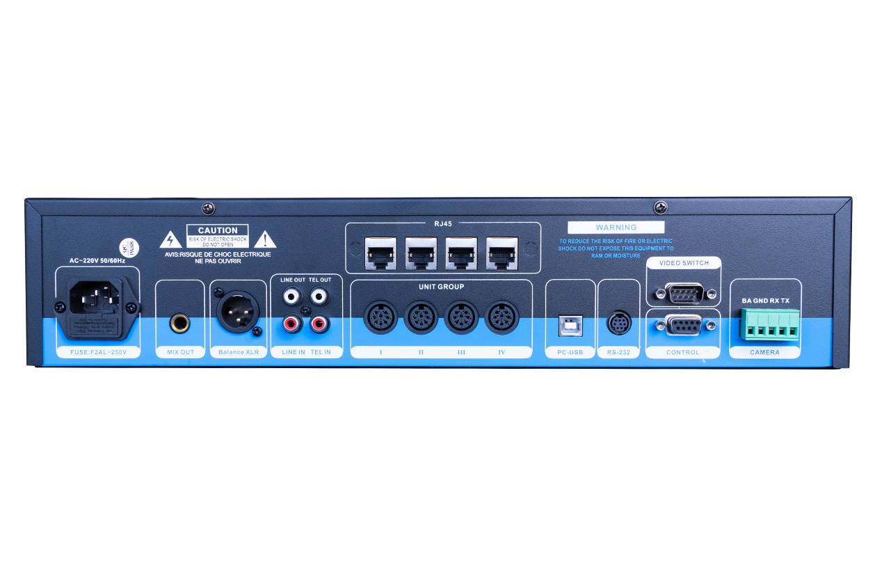 2.主机支持168个列席单元,同时发言人数可达4人,可按实际会议需求设定人数。