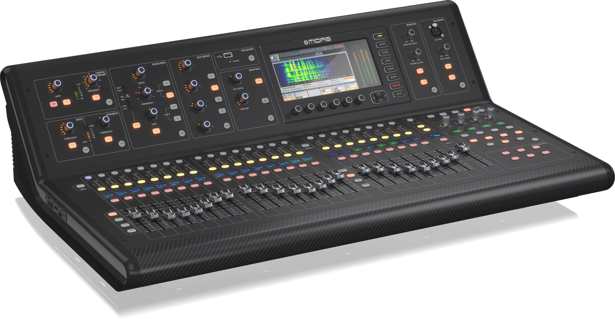 用于现场和录音室的数字调音台,具有 40 个输入通道、32 个 Midas PRO 麦克风前置放大器和 25 个混音总线以及现场多轨录音