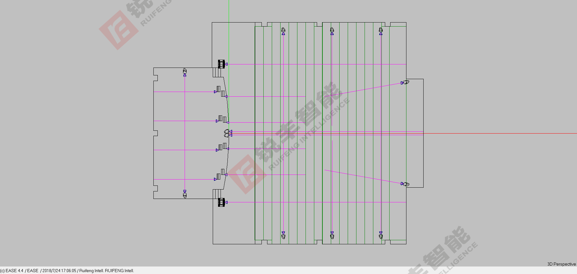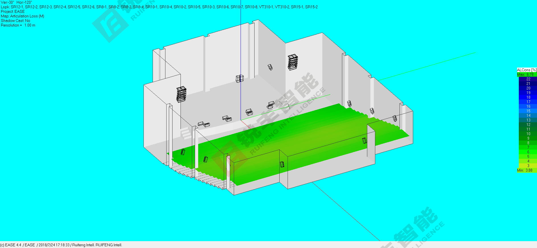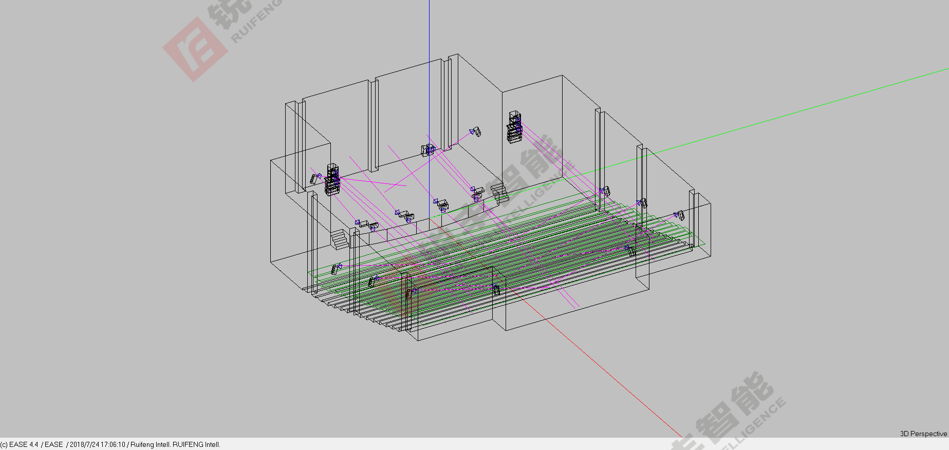 据图纸尺寸得知多功能厅的造型。系统中的所有设备均选用我司经销的技术成熟、性能先进、质量可靠的知名品牌锐丰RF系列音响,以保证设计目标的实现和系统运行的可靠性。