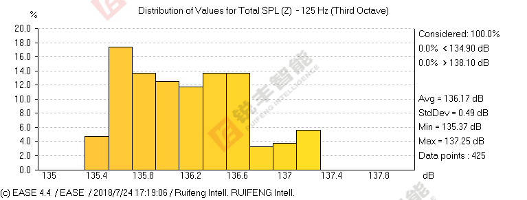 3)听众区内声压分布均匀,系统应具有足够的反馈前扩声增益。