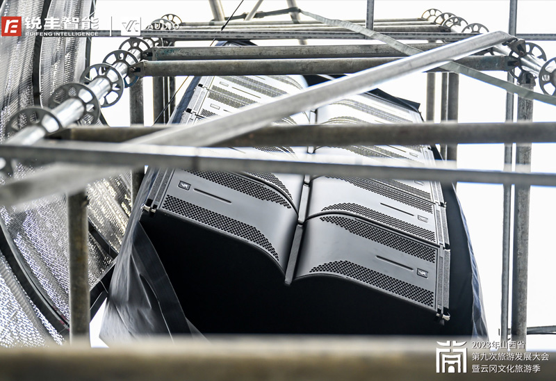 另外,为了配合观众区域两侧的城墙投影视频播放时,通过声音定位引导观众观看投影播放视频内容,锐丰智能在观众席两侧布置了4组ML15SA+L7有源音柱进行扩声。