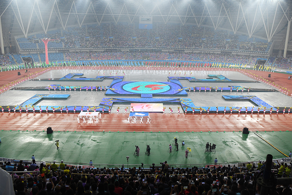 随着省委书记蒋超良宣布湖北省第十五届运动会开幕,在全场欢呼声中,三个方阵的护旗手分别手执中华人民共和国国旗、湖北省运动会会旗和湖北省第十五届运动会会旗正步入场。经久不息的掌声响起来了,全省17个市州及行业体协方阵代表团、裁判员方队挥手入场。随后,鲜艳的五星红旗、湖北省运动会会旗和湖北省第十五届运动会会旗在黄石奥体中心冉冉升起。