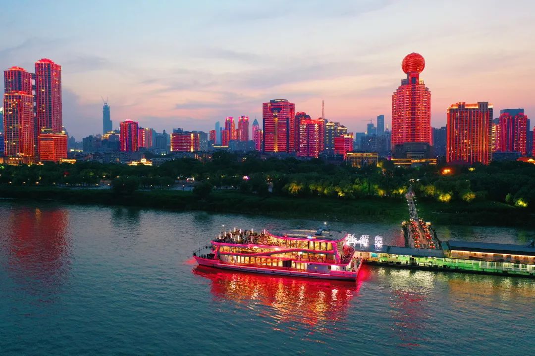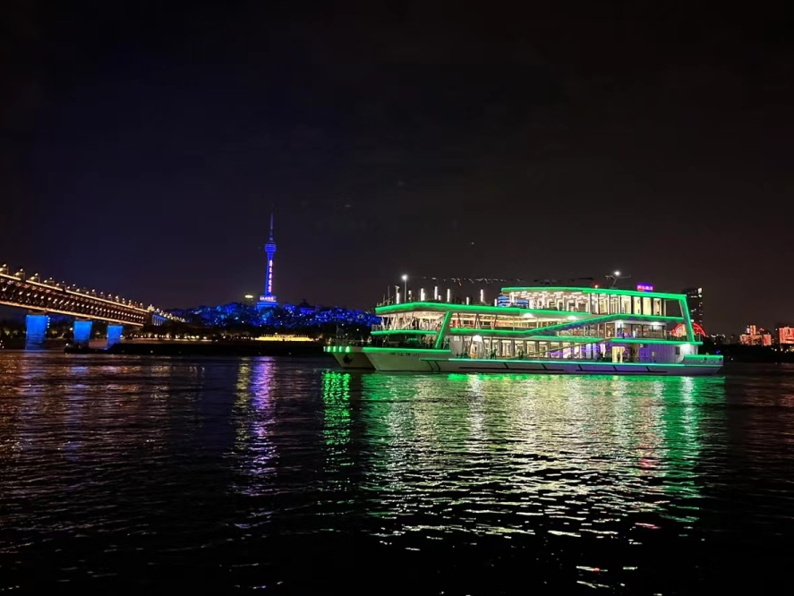 “两江晴川”号航行于长江一桥和二桥之间,带领游客沉浸式观赏美丽震撼的长江灯光秀,领略沿线城市地标风光。