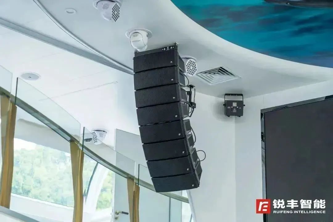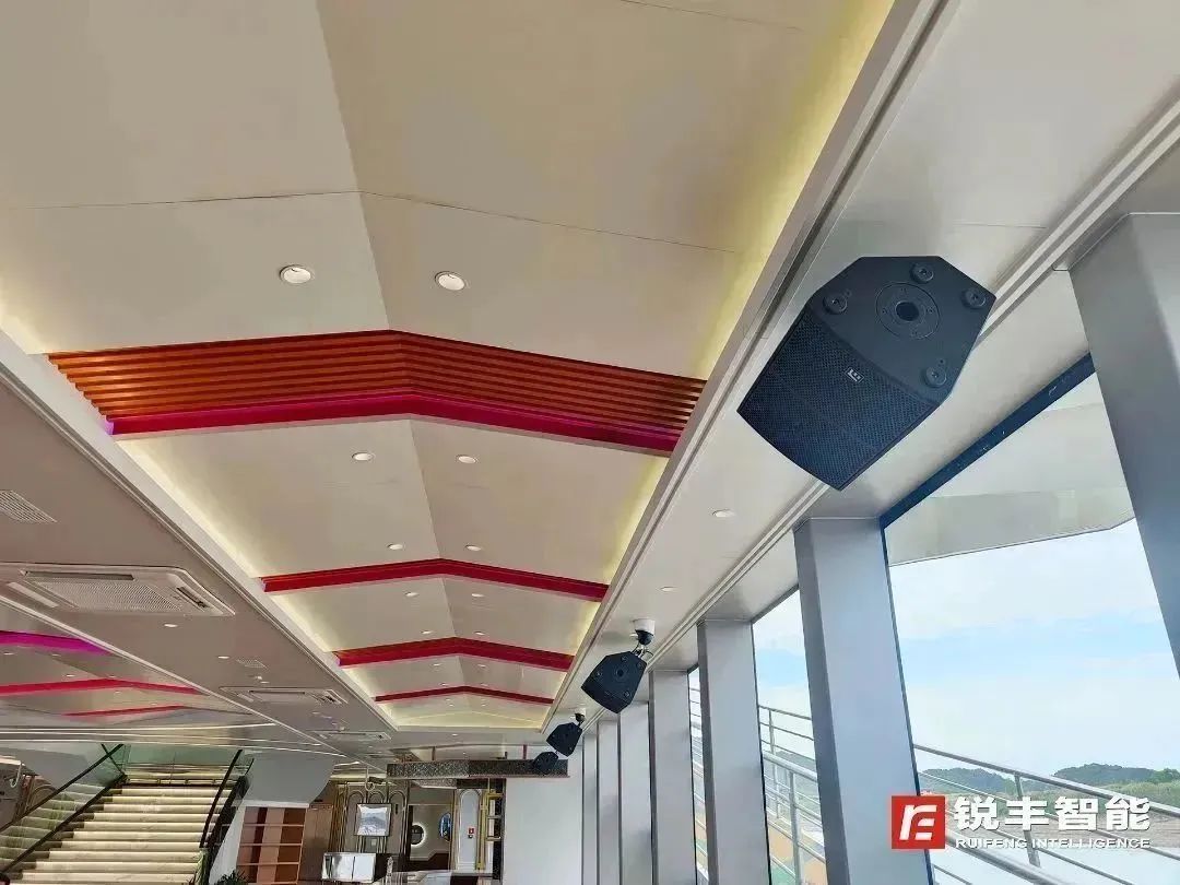 客容量500位的“珠江翡翠”号,是目前广州珠江夜游最大的纯电动新能源豪华游船。其扩声系统选用了锐丰智能VK205线阵列扬声器系统、TX系列多功能音箱、以及周边设备等产品。
