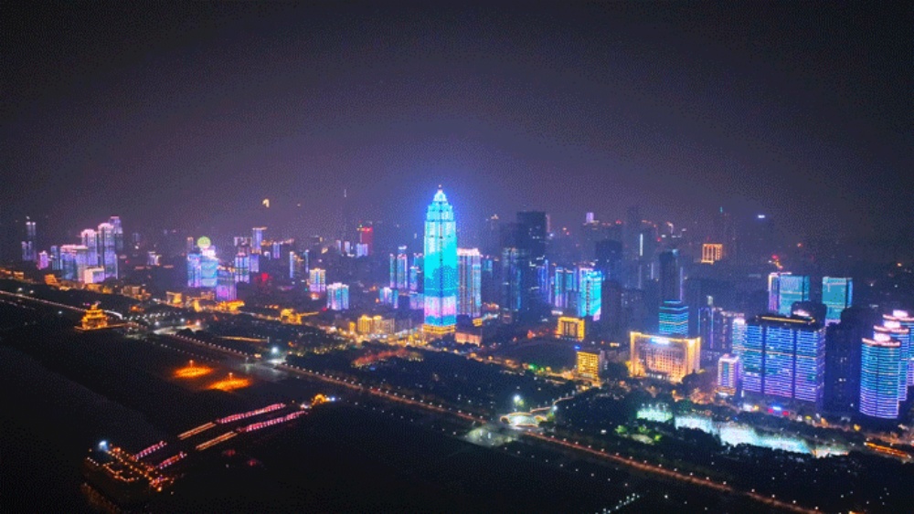 流光溢彩的灯光映衬着城市
