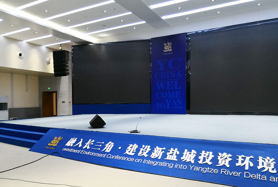 盐城国际会议展览中心,西侧紧邻盐城经济开发区招商中心大厦和东方公园。是盐城市重点工程实施项目之一,也是盐城市发展现代服务业的重要平台和对外交流、发展会展经济的重要载体 。会展中心的会议大厅选用了锐丰智能"RF"VK310线阵列扬声器系统,L5微型阵列音箱以及周边设备等产品。