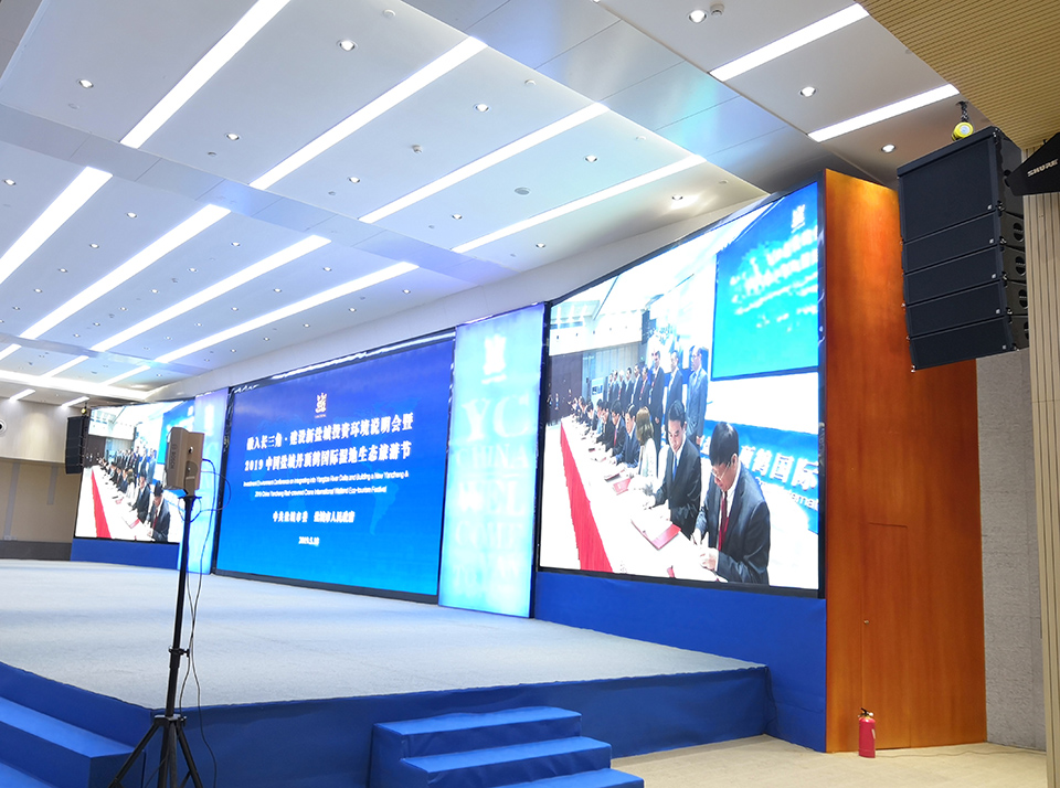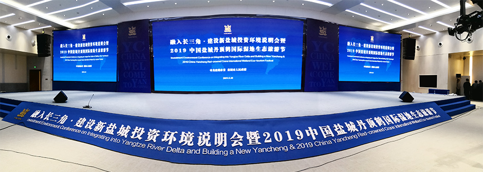 该项目已通过验收,并且成功举办了"融入长三角·建设新盐城投资环境说明会暨2019中国盐城丹顶鹤国际湿地生态旅游节"这项重大性会议,甲方评价扩声系统在长混响厅内能听音清晰、扩声无明显回声,满足使用要求。