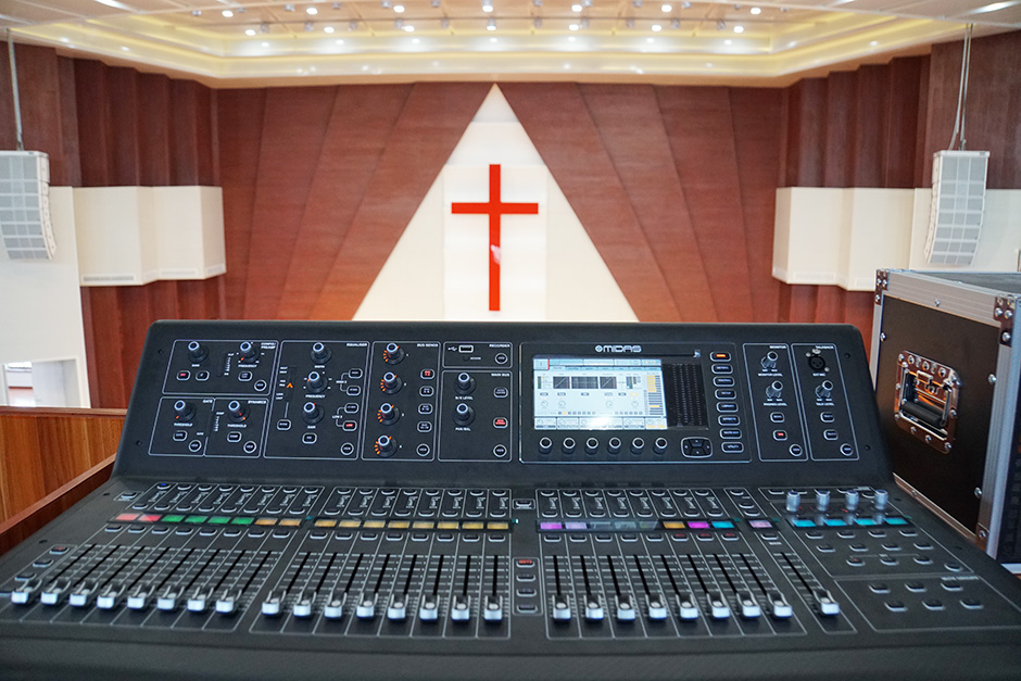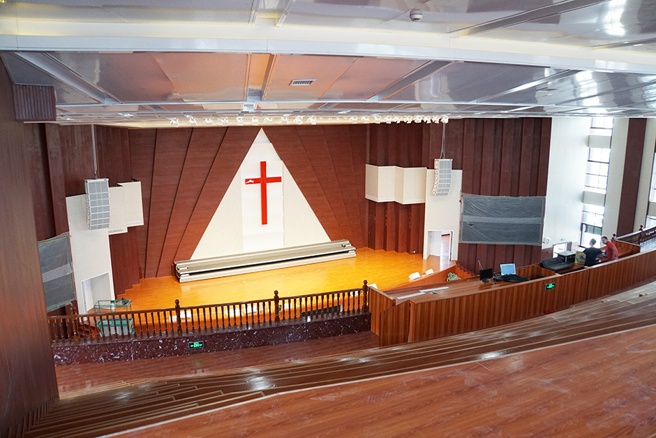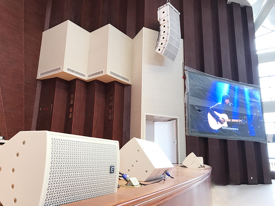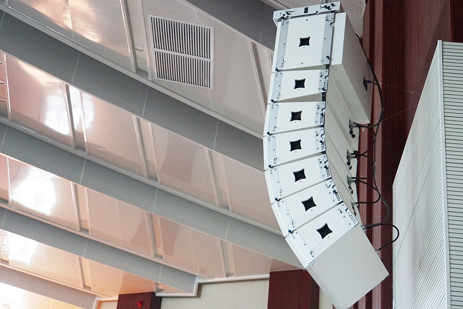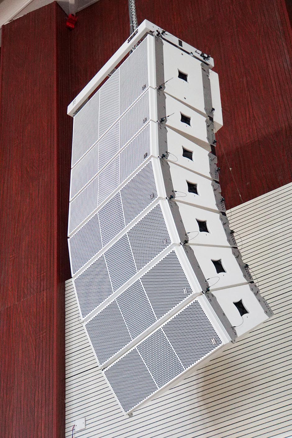 锐丰智能高端专业音响“RF”品牌为华东地区基督教堂安装了一套先进的音响系统。教堂以语言扩音为主的场所,平日需用于乐队唱诗班的演奏及合唱,有时还需用电视播映礼拜仪式,以及信徒们的文艺汇演活动。“RF”—VT线阵列音箱其卓越的语言清晰度与平滑的声场覆盖一直受到认可。教堂扩声系统选用VT线阵列扬声器作为主扩声,搭配TQ多功能系列扬声器作为辅助扩声,使用优雅的白色扬声器在美学上可以与教堂内部的布置完美地融合在一起。系统投入使用后,成为教堂领域音响系统的新标杆。