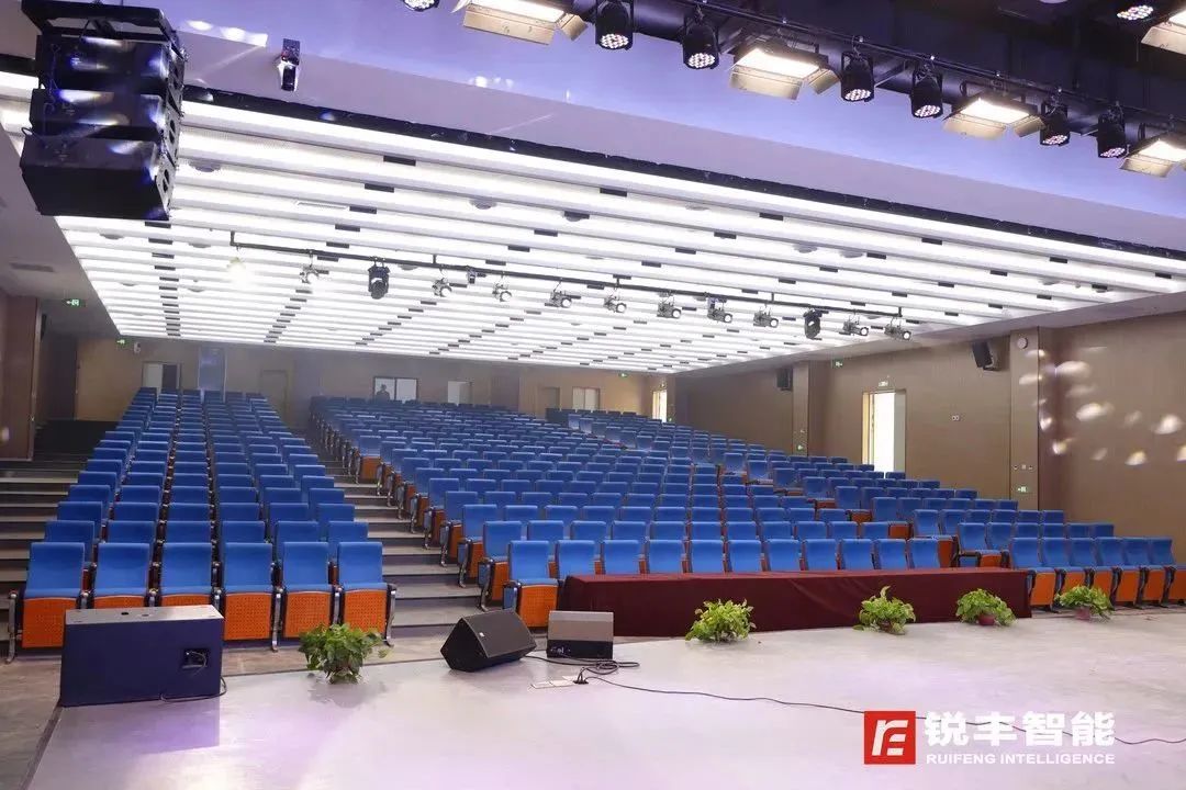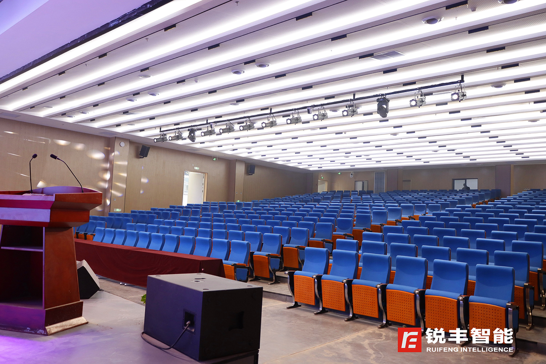该多功能厅主要用于开展各类会议、交流会,文艺演出等是以语言扩声为主。锐丰智能的技术工程师通过了解相关的图纸及资料,了解学校要求和标准,响应厅堂的各种功能和使用需求,确保设计出的扩声系统方案能全方位地满足客户的使用需求,整个系统兼具安全稳定性和实用可拓展性。