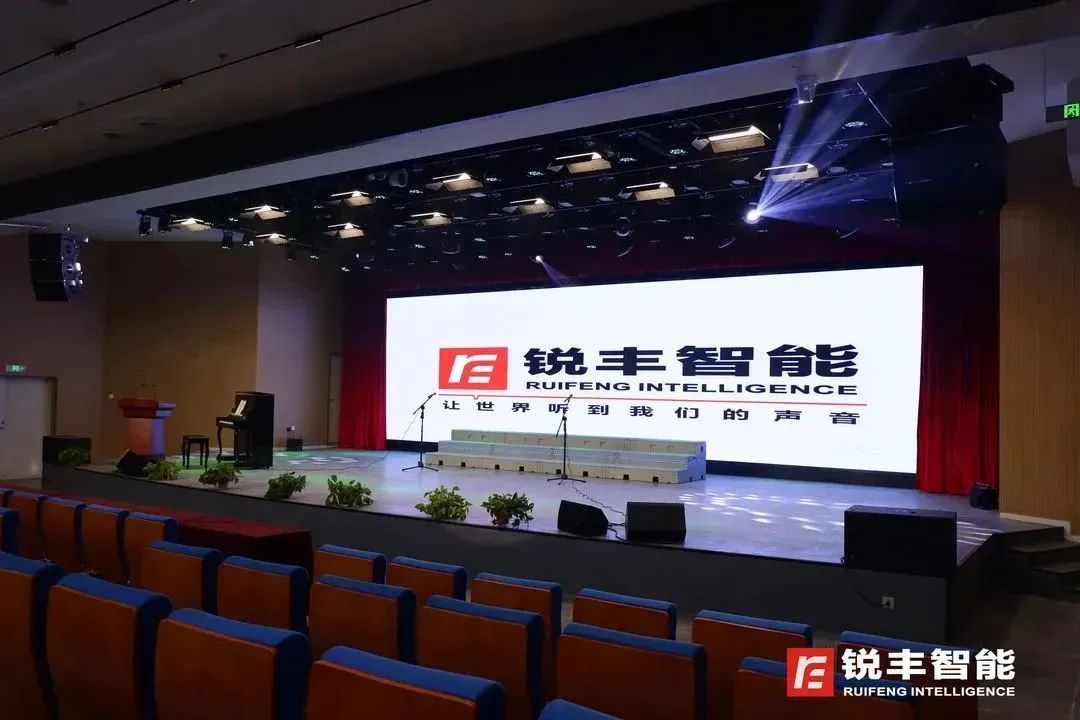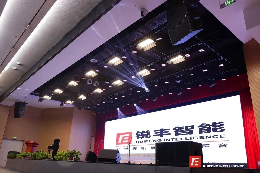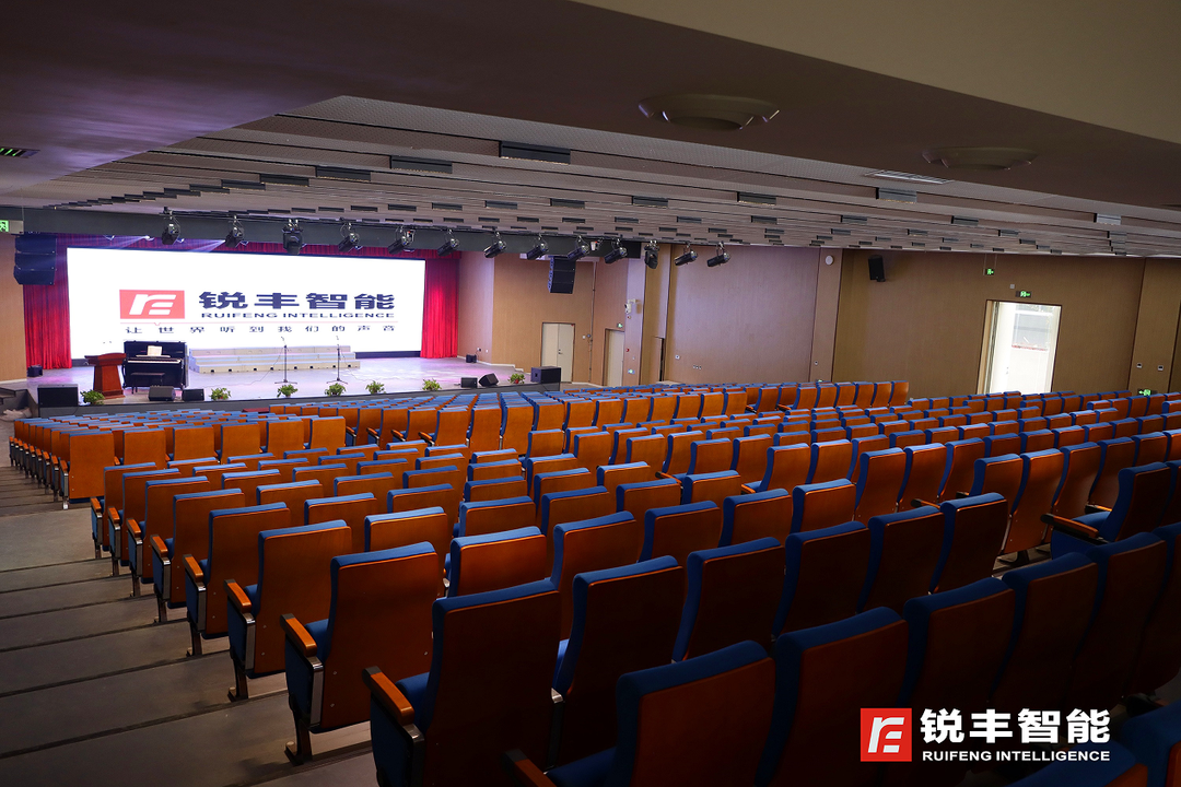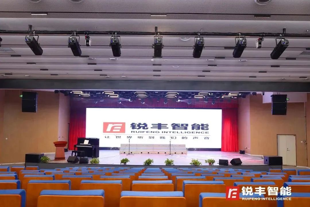 西安市雁塔区第一中学多功能厅主扩全部采用锐丰智能VR系列线阵,内置均为西班牙进口单元,目前全部调试完毕并投入使用。