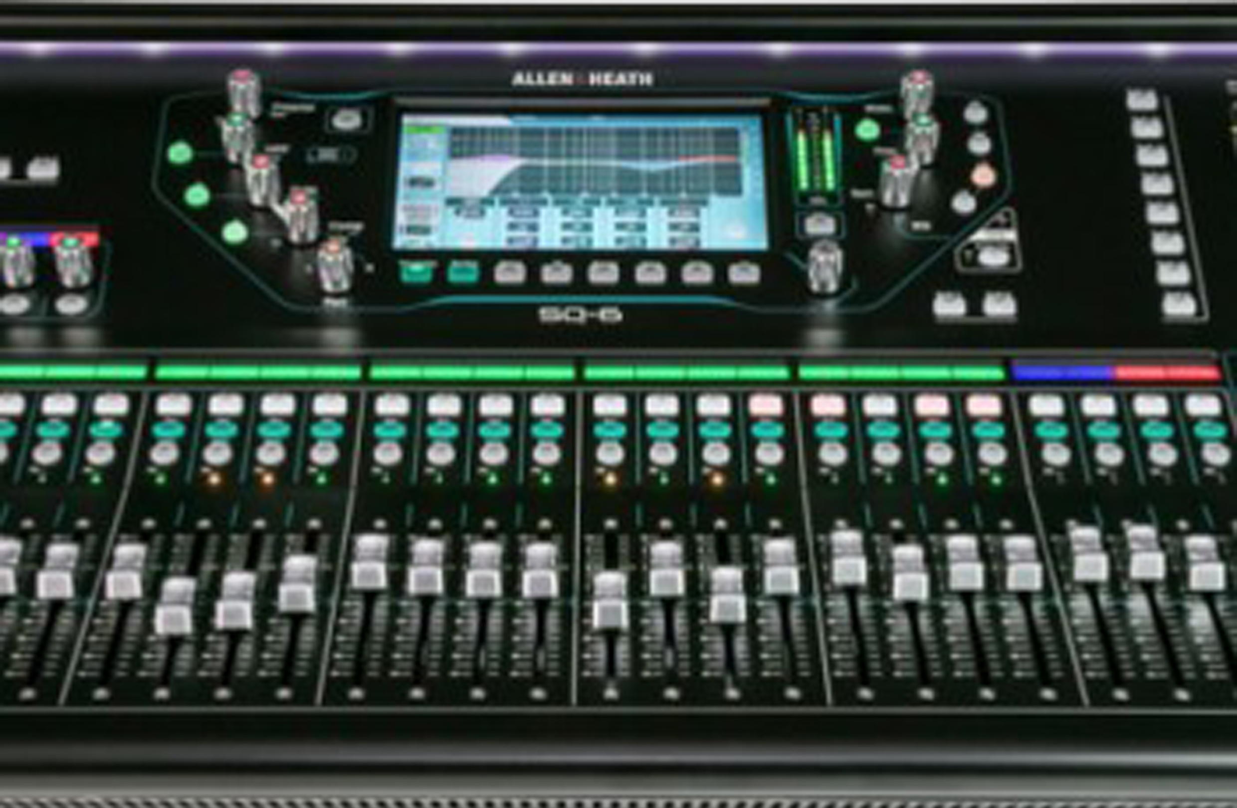 每一次新品研发,Allen & Heath团队都致力于接近终极混音经验。SQ的指示板以一块7’’高清电容触摸屏为中心,周围环绕着高摩擦力、发亮的旋钮,创建直观混音体验,清晰显示反馈信息,同时为用户提供即时控制。通道和混音可拖曳至任何通道条,支持自定义通道名称,通道条显示屏可显示通道选定的颜色,让用户根据需要创建混音环境。每个通道条具有专利的彩色通道电平显示系统,不同亮度和色彩的LED屏让您一瞥获知电平指示。SQ-6还提供16个软按键和4个软旋钮,轻触指尖即可将之分配至所需功能;还有一个“channel to all”(通道至所有)混音按钮,助您立即访问从选定通道发回的返送。