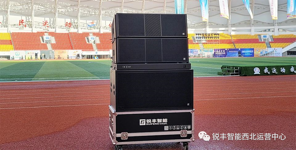 为了满足定西市体育场大面积的听音范围,这要求扬声器须具备较大的声压级,在甘肃省第二届中学生排球联赛开闭幕式活动中,采用“RF”旗舰—GTS线阵列三分频三驱动大型扬声器系统!主扩系统采用16只GTS312双12寸线阵列扬声器、8只WA218双18寸超低频扬声器、辅助补声采用VK210双10寸线阵列音箱及GTS28S单18寸超低频音箱,平均排布在运动场的表演区域。