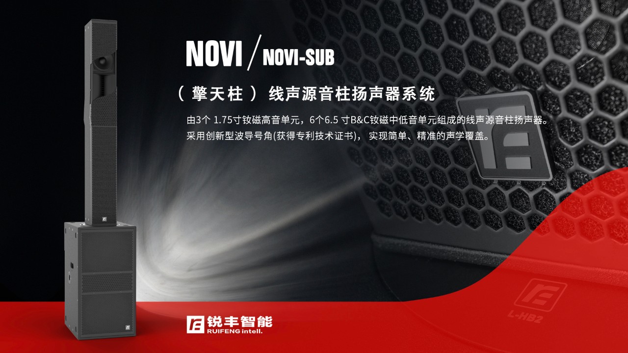 NOVI是一款垂直线声源音柱扬声器,由3个1寸高音单元,6个6.5寸低音单元组成,配置了创新型波导号角(拥有专利技术证书),实现简单、精准的声学覆盖,让每个听音点都得到品质一致均匀的声音和平滑的频响曲线,给小型固定安装及流动扩声系统供高品质音色和极高的清晰度解决方案。